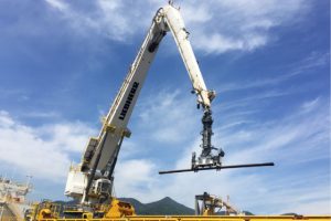 รูปที่ 1.15 เป็นรถขนย้ายวัสดุขนาดใหญ่ซึ่งต้องอาศัยความรวดเร็วในการยกของขึ้นลงจากเรือที่จอดเทียบท่าอยู่ ระบบไฮดรอลิกที่ใช้ในรถชนิดนี้ช่วยให้แขนยกสามารถหักงอหรือยกขึ้นลงได้ รวมทั้งควบคุมกลไกการหมุนของรถด้วย