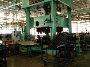 รูปที่ 1.5 Hemming 150 Ton ทำงานด้วยระบบไฮดรอลิกซึ่งสามารถป้องกันอันตรายที่จะเกิดกับคนและเครื่องจักรได้ ถึงแม้จะใช้งานหนักเต็มที่ อุปกรณ์ไฮดรอลิกที่ใช้กับเครื่องจักรขนาดนี้ได้แก่ ปั๊มวาล์วควบคุม ซึ่งสามารถติดตั้งได้โดยใช้เนื้อที่เพียงเล็กน้อย