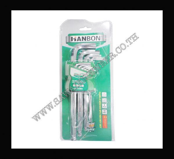 ประแจหกเหลี่ยมหัวบอล 9/ชุด ด้ามสั้น