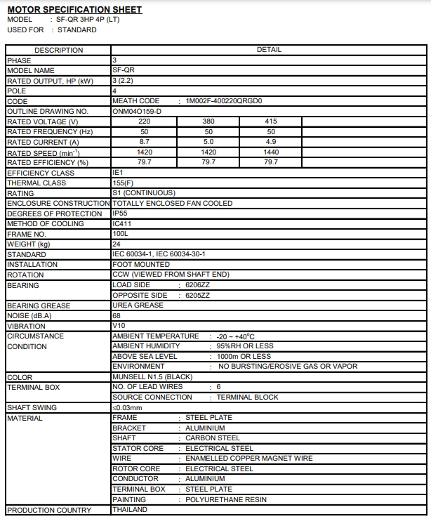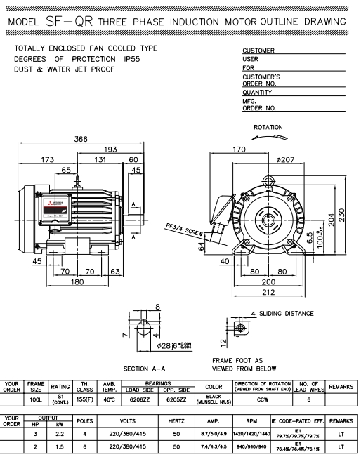 มอเตอร์ รุ่น SF-QR กำลัง 3 แรงม้า (2.2 กิโลวัตต์) ขาตั้ง
